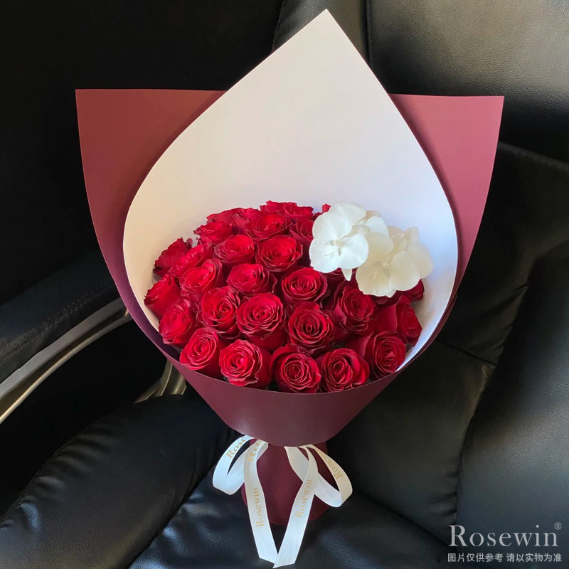 33朵紅玫瑰,白色蝴蝶蘭裝飾